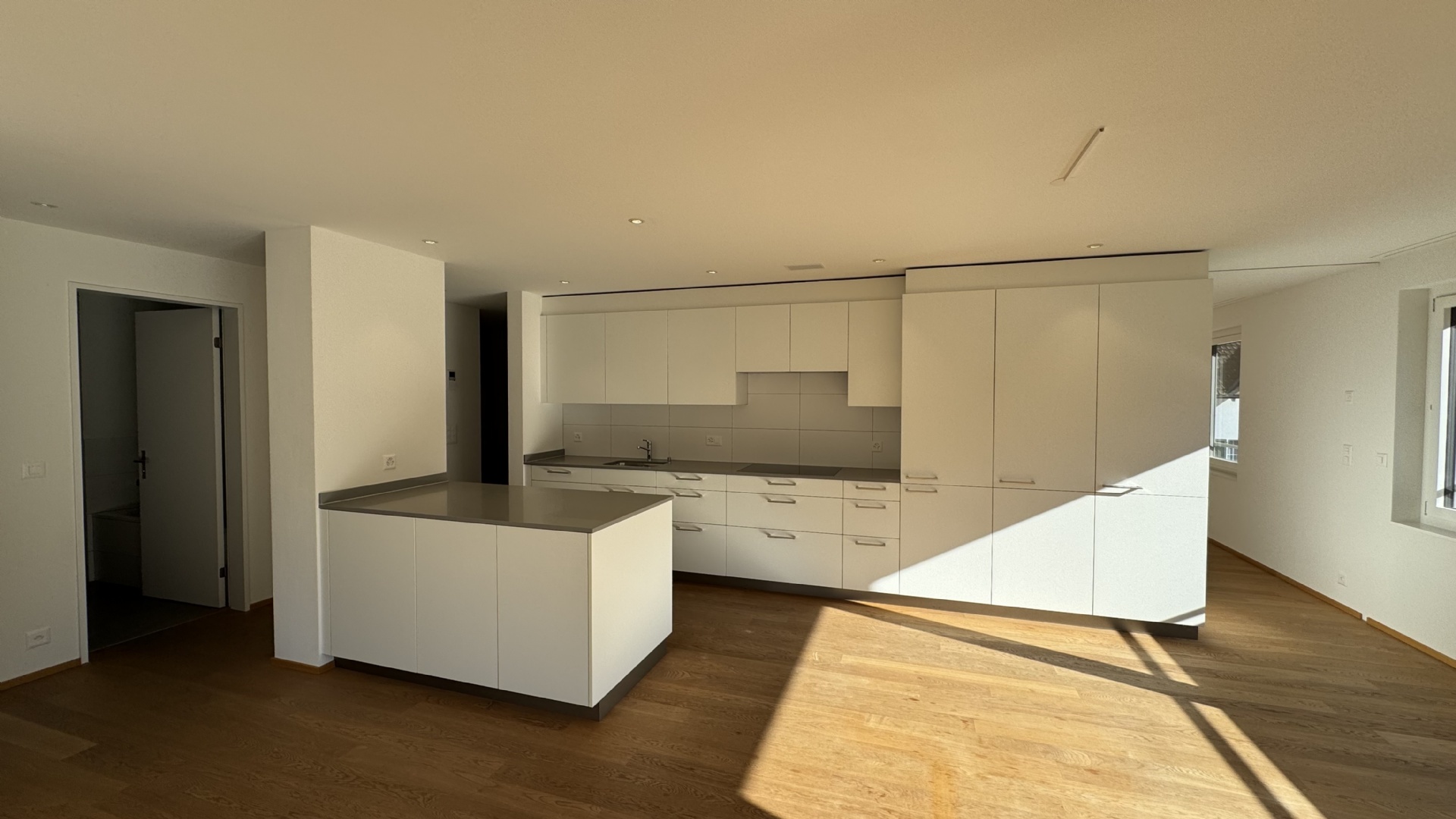 Der offene Wohn- und Essbereich mit moderner Küche bietet viel Stauraum